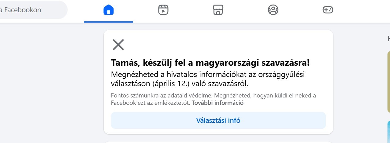 A választási időszakra reagálva a Facebook is lépett. Sok magyar felhasználótól érkezett jelentés, hogy figyelemfelhívó üzenetet kap a platformon, amely a szavazással kapcsolatos hivatalos információkra hívja fel a figyelmet.